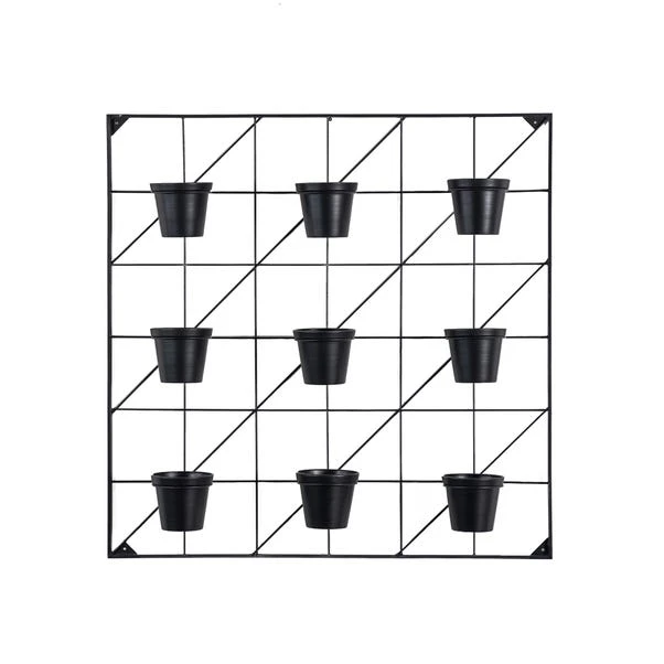 Add this spectacular wall planter to your space for a sturdy and superb display of your favourite plants. Featuring a solid metal frame with nine evenly spaced plant pots, you can easily create a wall of vibrant greenery whether you prefer to place it indoors or outdoors. It has 4 holes to securely attach to a wall and is available in a choice of black plant pots, or white and terracotta for a lighter, brighter effect.
