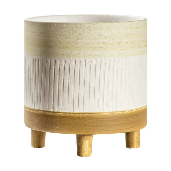 Add a decorative touch to your home with this stylish and contemporary Eastling Pot. Beautifully designed with a brushed-type finish base and top, with white ribbed details in the centre. This stunning pot is perfect for displaying your favourite plants in any room of your home. Pair it with coordinating pieces from the Eastling range to create a beautiful plant display.