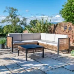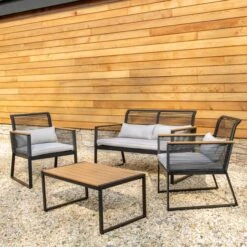 This Churchgate 4 Seater Conversation Set is the perfect combination of classic and contemporary style. With 4 sofas and a metal table, this set has a modern twist that will make it ideal for adding the wow factor to your garden. The 2 chairs and sofa feature seat pads for added comfort, perfect for enjoying the sun with friends and family.