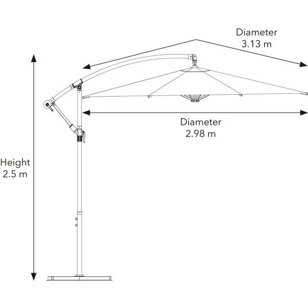 Keep yourself shaded from the sun with this Cantilever Cream 3m Parasol. This parasol can be used as a free-standing parasol using a weighted base to keep the parasol in place. This product features an easy to operate crank which will help you to adjust the canopy position when required. It is recommended that the parasol remains closed when not in use and is always kept closed in extremely windy conditions. This cream parasol adds the perfect splash of colour to any outdoor space.