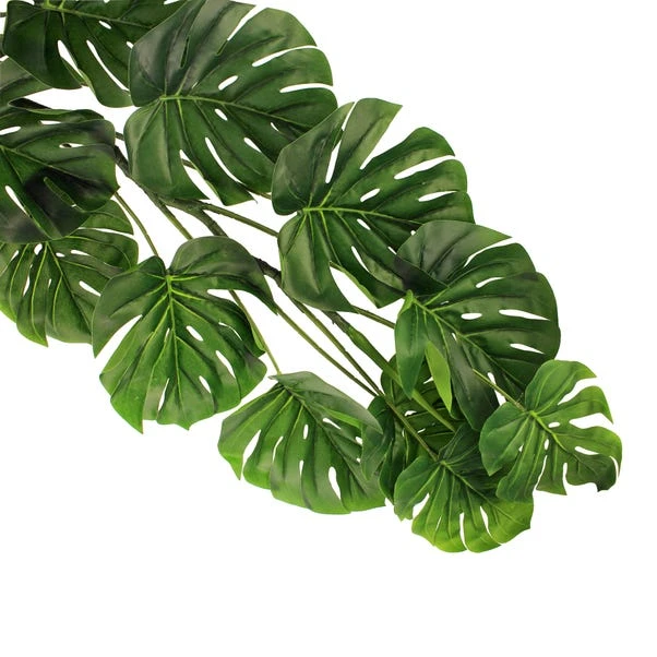 Ideal for home display, this luscious garland has detailed printing on the extra large leaves providing a realistic, eye-catching finish, bringing the outside in, without the hassle! This fabulous garland has a stunning green colourway with its tropical leaves that will add a touch of style to any room of the house.