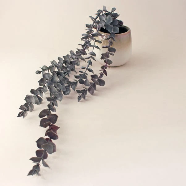 Set in a reactive glaze ceramic pot, this eye-catching trailing eucalyptus, is ideal for any room of the house, with its modern colourway as well as being artificial, so very easy to maintain and keep clean. This piece is perfect for display on high shelves and tables, where the trailing elements can be fully displayed.