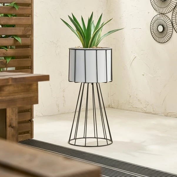 - Elements White Planter on Wire Frame