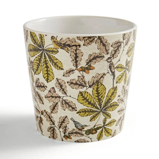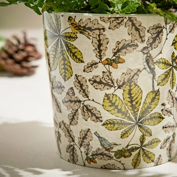 Plant a little bit of style in your home. With this stoneware plant pot, you can give your plants a stylish home that is as unique as their nature. Crafted from pure ceramic and finished with a Woodland design, this will look great on any windowsill or tabletop.