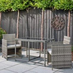 Crafted from steel and weave, this timeless Elland Bistro set is perfect for sitting down with loved ones for a drink. This set is durable, hard-wearing and weather resistant as the frame is weatherproof and the set comes powder coated to prevent rusting. Easily wipe the set clean when required. Part assembly is required to get this set ready for use.